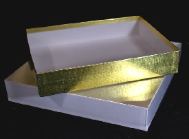 Clear acetate 2-piece boxes with gold cardboard inserts